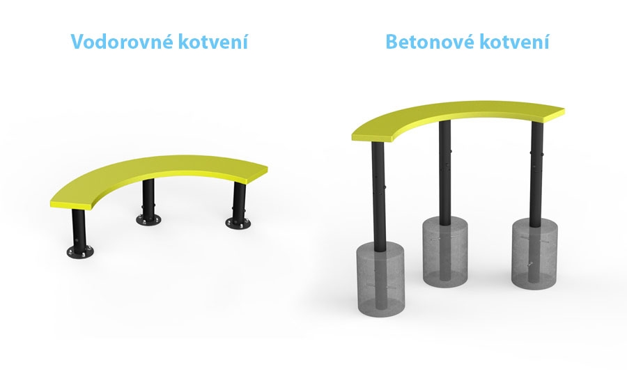 Lavička je skvělým doplňkem k venkovním hudebním nástrojům, který zvýší komfort během zábavy a hraní na hřišti nebo v parku. Jsou dostupné v uspořádáních ‘circle’, ‘wave’ a ‘s’. Větší počet laviček usnadňuje přípravu pohodlného sezení pro skupinu dětí a jejich opatrovníků.