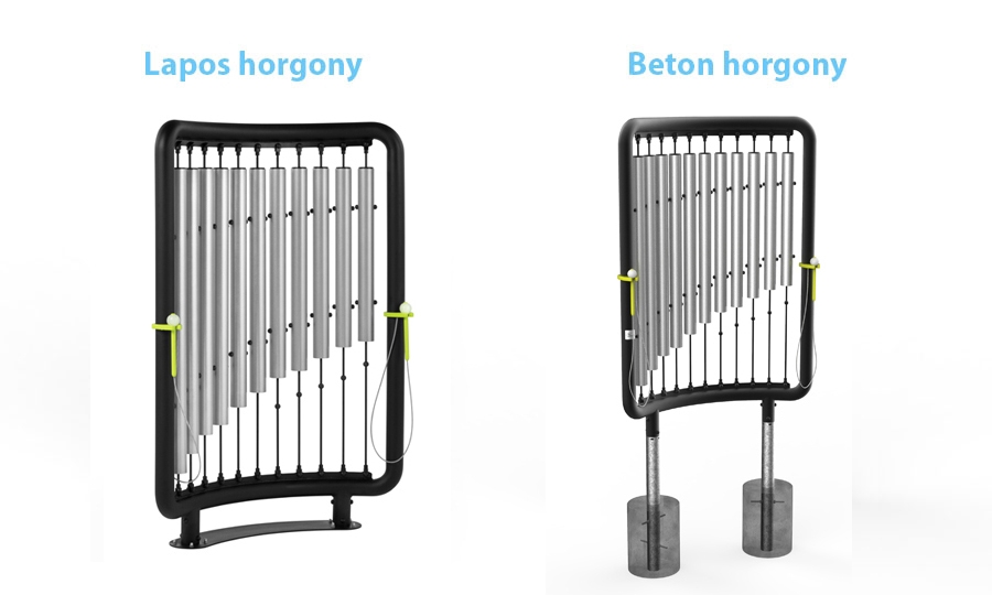 Különböző hosszúságú fémcsövekből álló csőszerű harangok. Minél hosszabb a cső, annál alacsonyabb a hang.