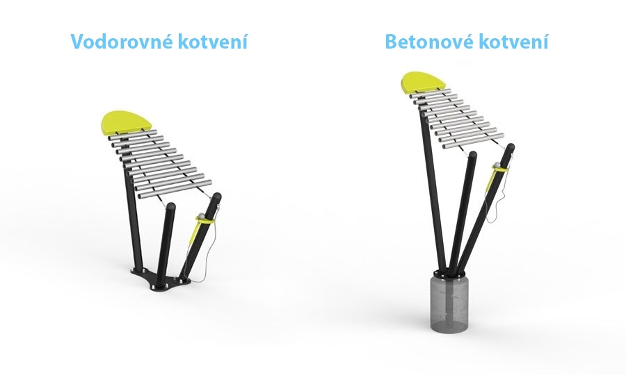 Betonové kotvení - zaručuje profesionální a stabilní instalaci hudebních nástrojů na měkkém povrchu (např. trávník, písek).