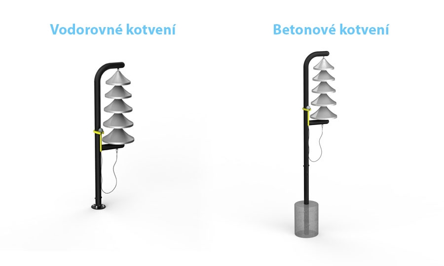 Nástroj může být připevněn k zemi prostřednictvím dvou kotvicích systémů: