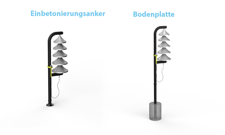 Einbetonierungsanker – sorgt für eine fachgerechte und stabile Montage der Instrumente auf weichen Untergründen (z.B. Rasen, Sand).