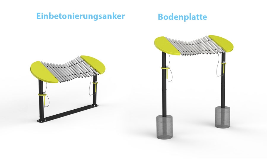 Einbetonierungsanker – sorgt für eine fachgerechte und stabile Montage der Instrumente auf weichen Untergründen (z.B. Rasen, Sand)