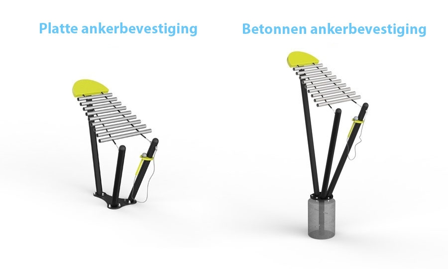 Betonnen ankerbevestiging - zorgt voor een professionele en stabiele installatie van de instrumenten op zachte oppervlakken (bijvoorbeeld gazon, zand).