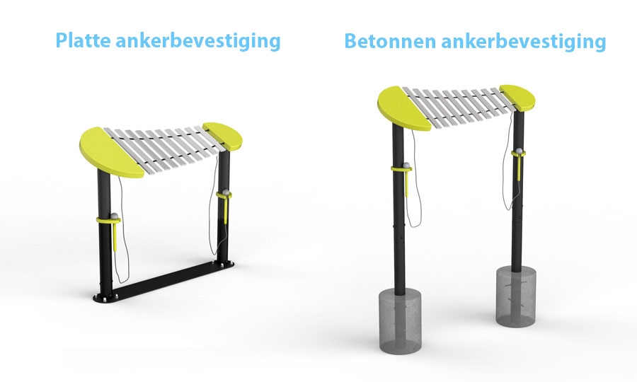 Betonnen ankerbevestiging - zorgt voor een professionele en stabiele installatie van de instrumenten op zachte oppervlakken (bijvoorbeeld gazon, zand).